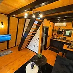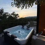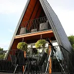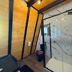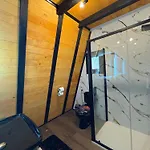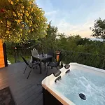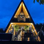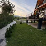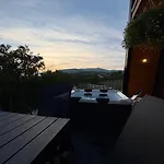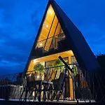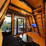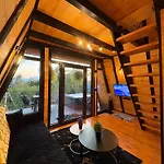 Situada a cerca de 6 km da Šarena Džamija, a A-Frame Luxury House With Hot Tub Vila Nova Bila dispõe de terraço com vistas para a montanha.